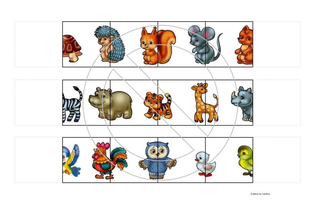 Domino med tegnede dyr